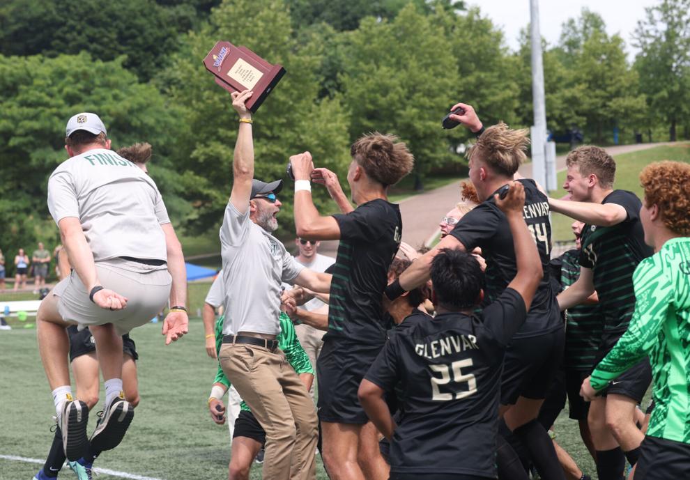 Glenvar boys soccer coach Josh Jones raised one forefinger at Saturday’s trophy presentation.